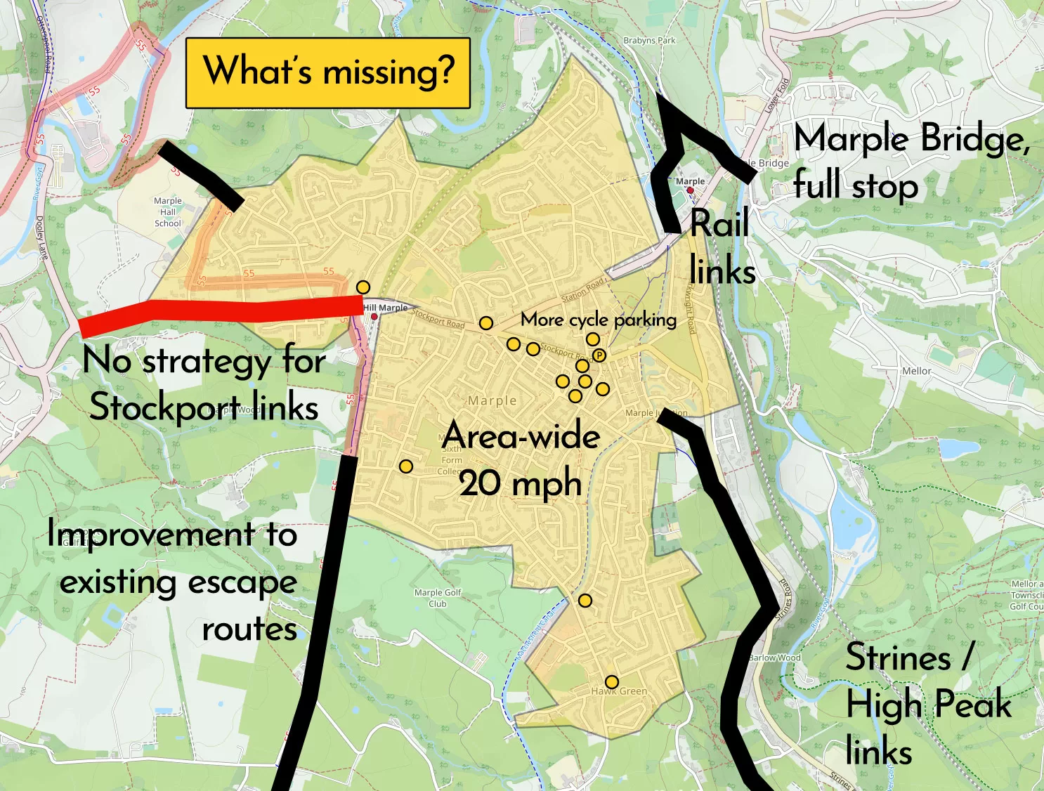 While it may just highlight past failure, even these pretty basic proposals would be the biggest thing to happen for cycling and walking across Marple in over three decades.